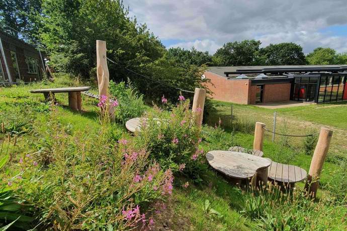 Vores legeplads er indrettet til at skærpe alle sanser og omkranset af naturligt krat og buskads. Motorik er også lig med udeliv og leg, og vi prioriterer at være ude i den friske luft, på legepladsen eller på tur.